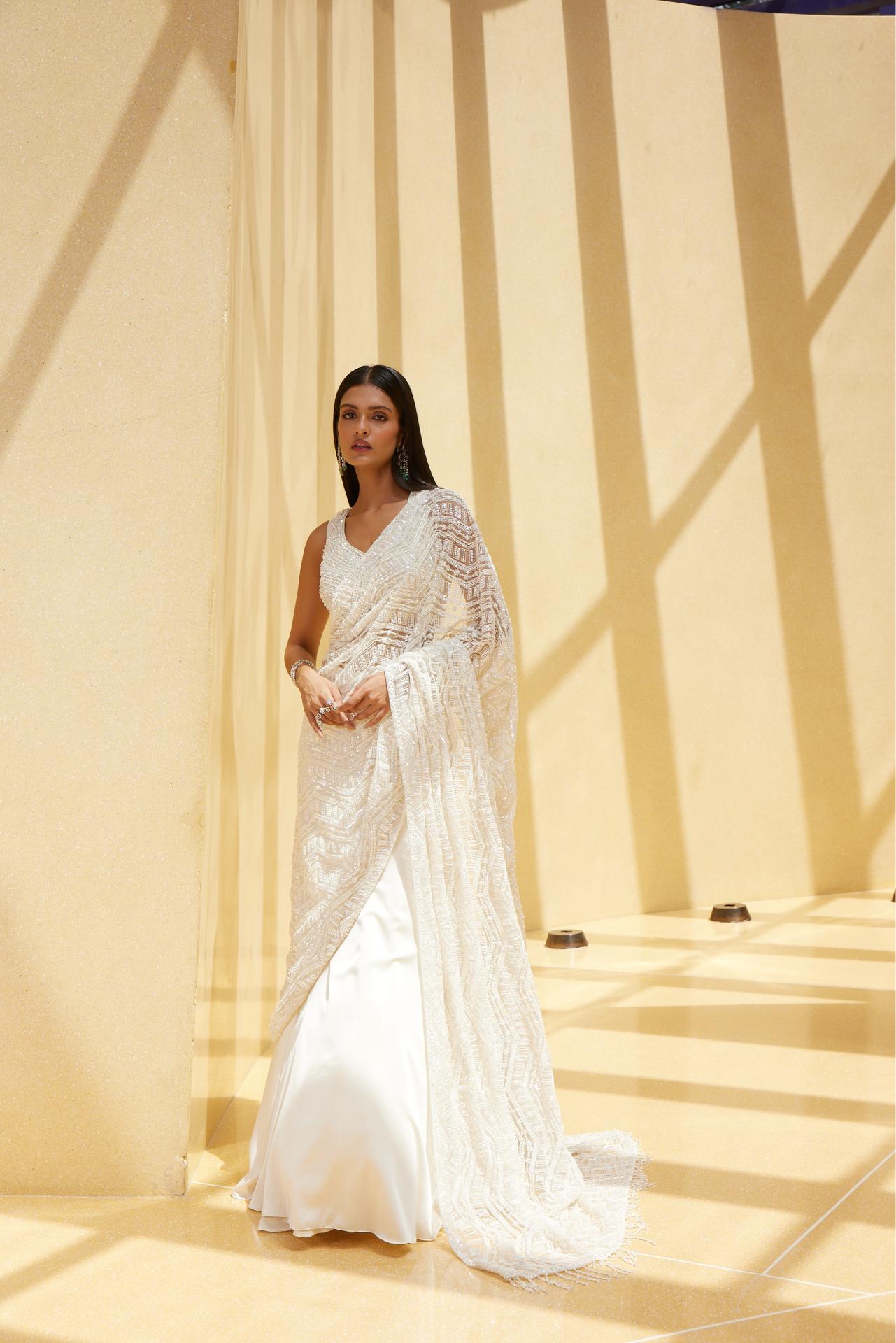 Ivory Drape Skirt Saree.