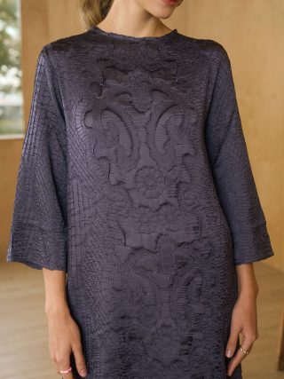 FEATURING A GREY HIGH NECK DRESS WITH CRUSHED DETAILING IN TEXTURED POLYSTER BASE.