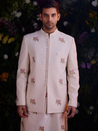 Crystal pink jacket & kurta set.