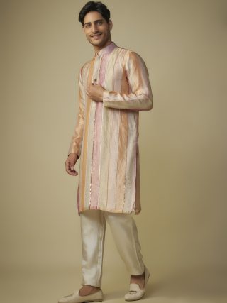Featuring multicolour tissue embroiderd kurta with tissue pant.