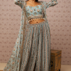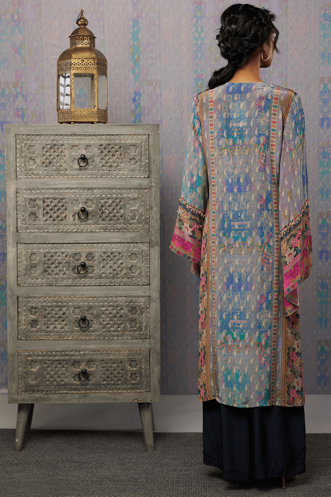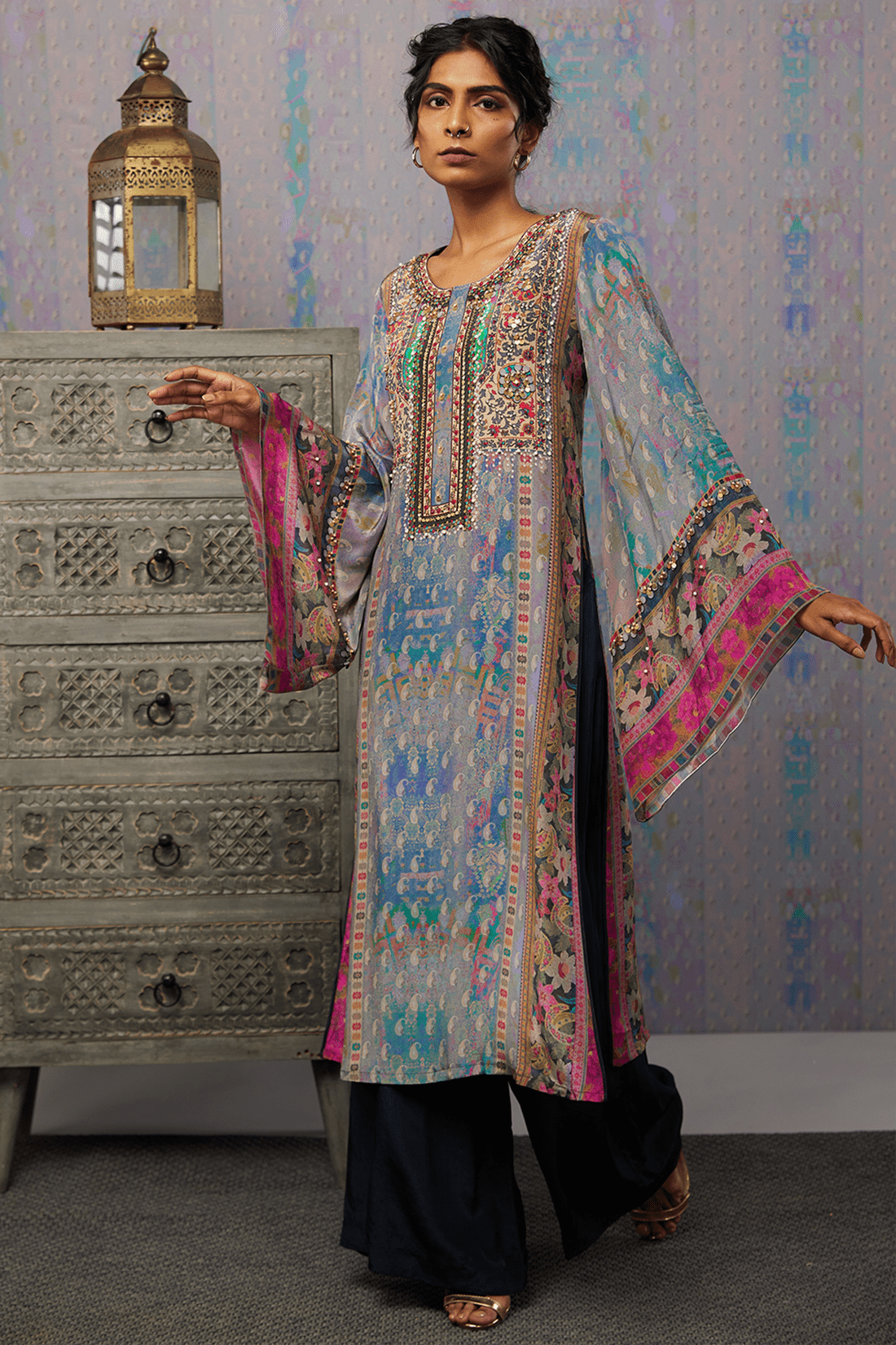Navy blue Ikaya embroidered kurta set in crepe fabric.