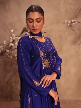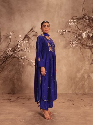 This 2 piece kurta set comes with heavy zardosi, tikki and mirror embroidery on the neckline. It is enhanced with tikki and mirror butis spread all over the kurta. It is paired with embroidered pants. Optional embroidered dupatta available on request.