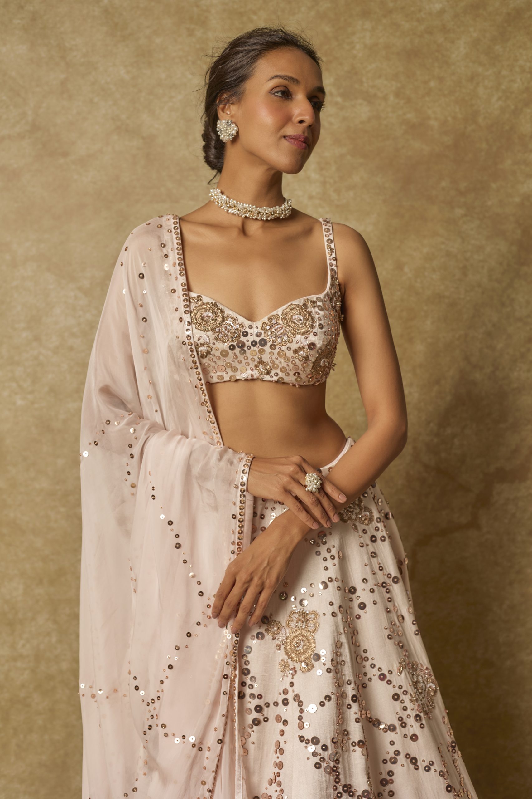 Baby Pink Sequin Embroidered Lehenga Set.