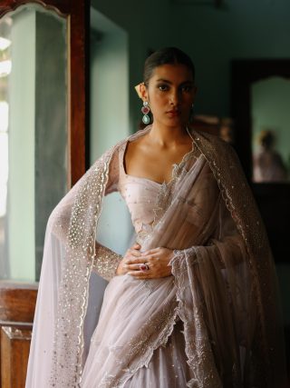 Light purple lehenga set in the net fabric.