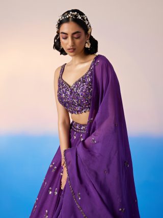 Royal purple embroidered lehenga with blouse & dupatta.