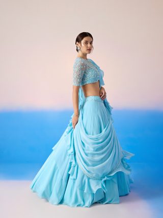 Heavy embroidered blouse with lehenga & attached dupatta.