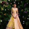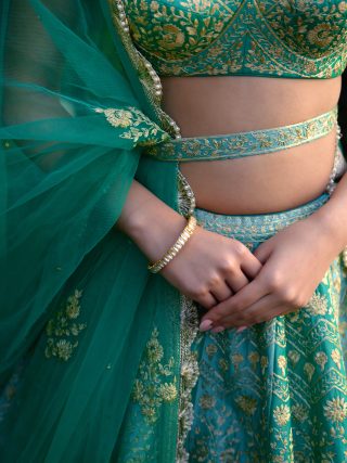 Vivid green zari dori embroidered lehenga with Net dupatta.