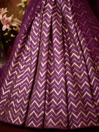 Purple wine pleated brocade lehenga set.