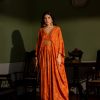 This pink jumpsuit has cutdana and tikka embroidery. The base of the garment is georgette.