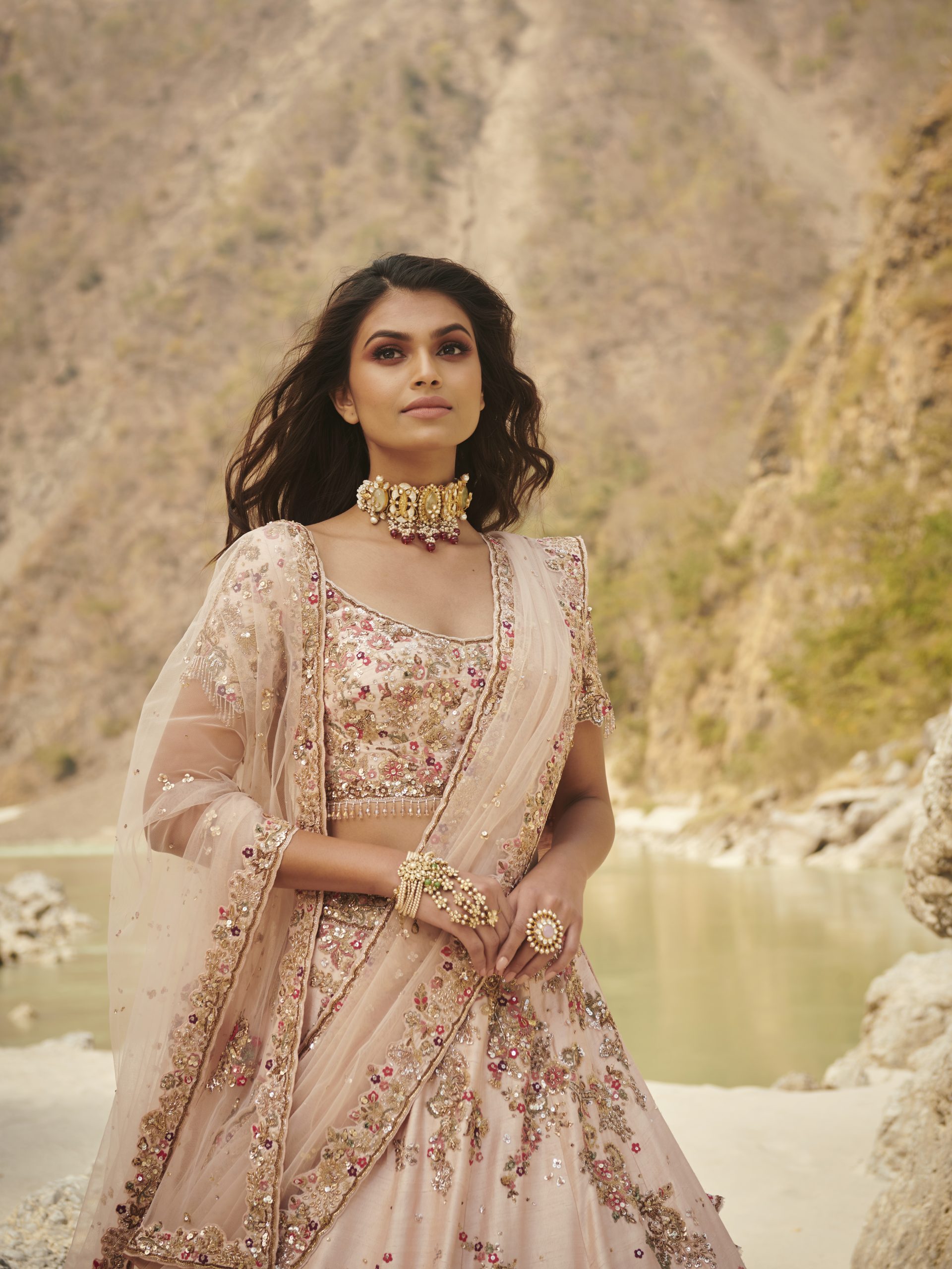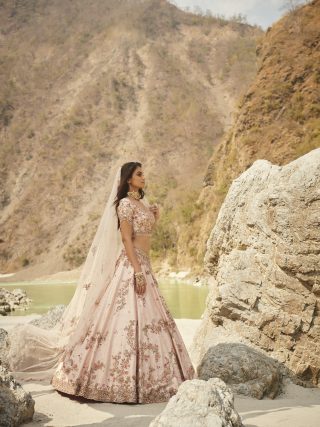Powder Pink Raw Silk Bridal Lehenga with Dori & Zardozi embroidery