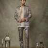 Featuring black embroiderd sherwani with silky satin dupatta with mashroo pant.