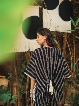Cotton jacquard top with slub fabric at the back.